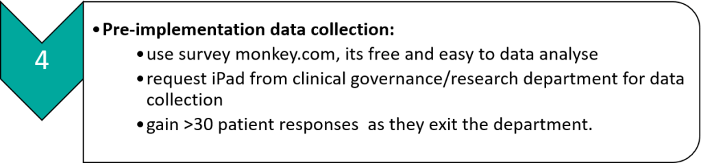 *data collection is optional. It has already been shown to be a successful intervention at multiple sites. Discuss with your head of department/hospital communication teams. When starting a new intervention, teams often like to see data to support a new project.